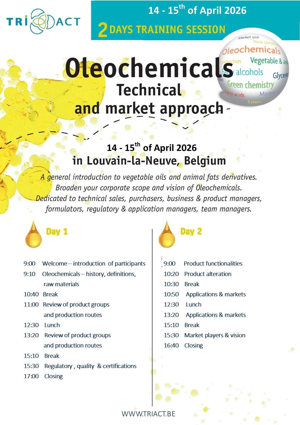 Dedicated to all actors of oleochemicals, active in production, R&D, technical sales and purchase, regulatory, etc.